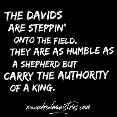 But, know this: NOW, the Davids are steppin’ onto the field. They are as humble as a shepherd but carry the authority of a king. The Goliaths don’t stand a chance! It doesn’t matter that they’re large in stature, loud in the mouth and wielding a sword. All that matters is that the Lord has equipped us with the weapon needed to take them out! Time to walk onto the field in the authority you’ve been given.