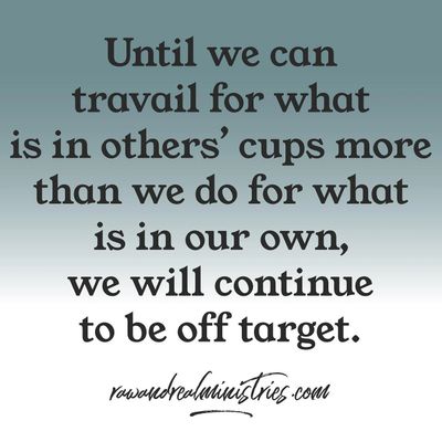 Until we can travail for what is in others’ cups more than we do for what is in our own, we will continue to be off target.